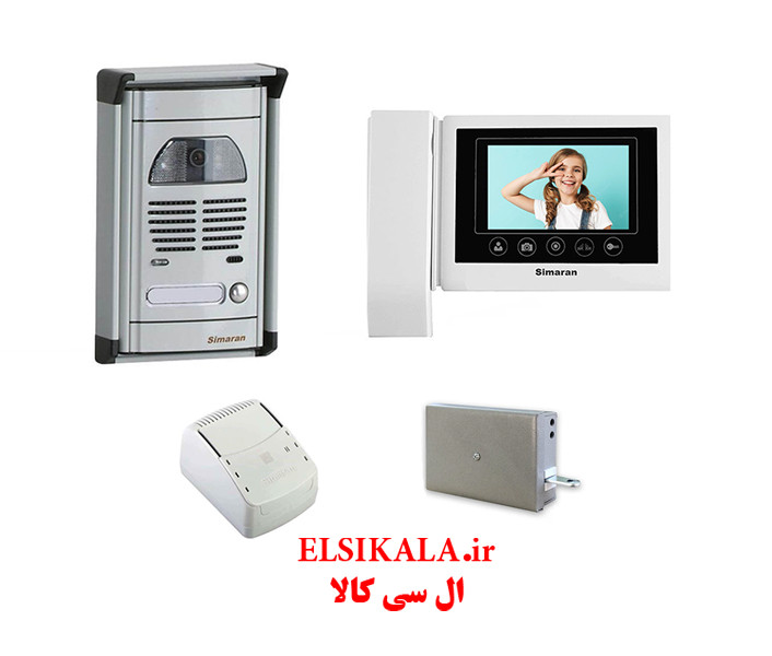یک عدد مانیتور 4،3 اینچ کلید لمسی بدون حافظه سیماران مدل 43TK /یک عدد پنل تصویری سیماران مدل فوژان/ یک عدد منبع تغذیه / یک عدد قفل در بازکن