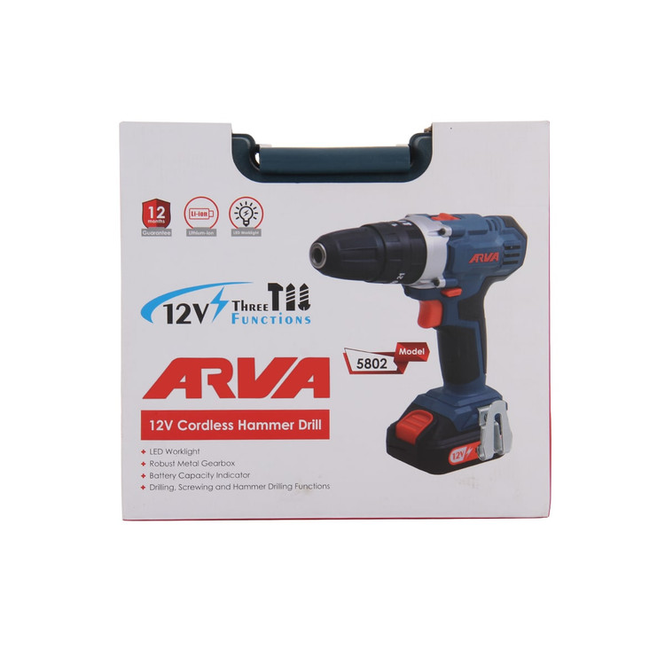 دریل پیچ گوشتی شارژی چکشی ۱۲ ولت مدل ۵۸۰۲ آروا