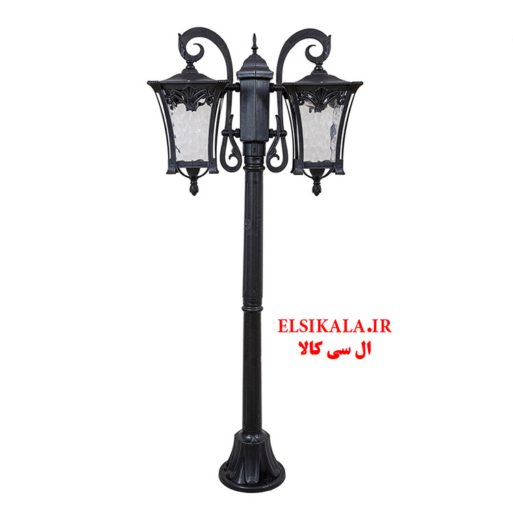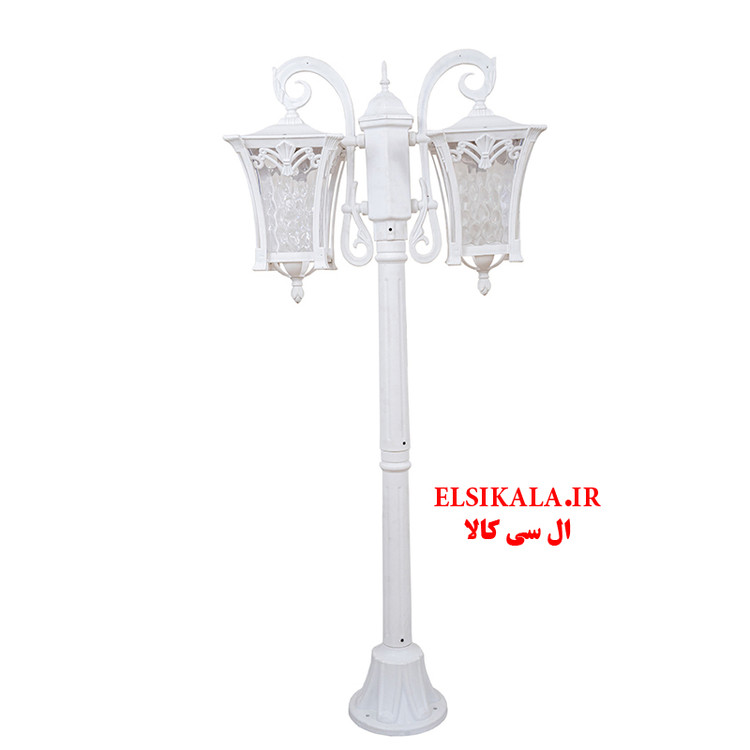 چراغ حیاطی مدل کاسپین دوشعله مشکی مسی سفید با پایه و بدون پایه