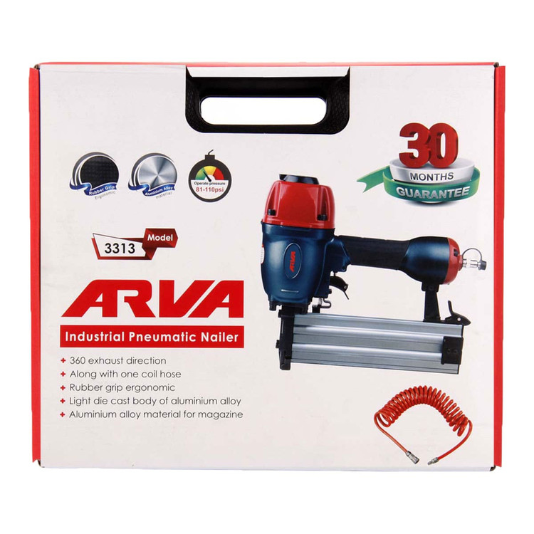 میخکوب بادی آروا مدل ۳۳۱۳ یک ابزار بادی است که میخ ها را با سرعت و قدرت بالایی درون اجسام مختلف شلیک می کند. میخ مناسب برای این مدل میخ کوب، اس تی (ST) است. از این دستگاه در کابینت سازی، مبلمان سازی، رویه کوبی و نجاری استفاده می شود. میزان فشار دستگاه ۸۱ تا ۱۱۰ psi یا ۵.۵ تا ۷.۵ بار می باشد.