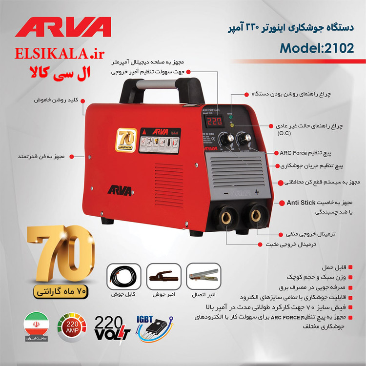 دستگاه اینورتر جوشکاری ۲۲۰ آمپر IGBT مدل ۲۱۰۲ آروا