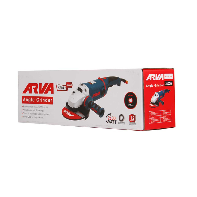 اگر در کارگاه خود با اجسام فلزی و آهنی کار می کنید مسلماً به یک فرز آهنگری پر قدرت و صنعتی نیاز دارید. سنگ فرز آروا ۵۵۰۴ دارای یک موتور قدرتمند و صنعتی است که توان ۲۶۰۰ وات دارد. سرعت بی باری این دستگاه ۸۰۰۰ دور بر دقیقه است و دیسک برش ۱۸۰ میلی متری بر روی آن نصب می شود. تمام بلبرینگ های این سنگ فرز ضد گرد و غبار هستند و سیم این دستگاه تحت استاندارد vde آلمان است تا طول عمر محصول افزایش پیدا کند.