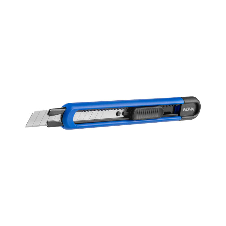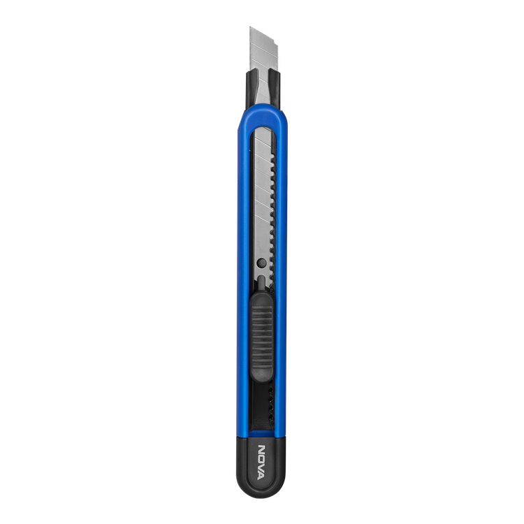 کاتر ۹ میلیمتری نووا مدل ۱۳۰۵، ابزاری دقیق و ایدهآل برای انجام برشهای ظریف و کارهای هنری است که به کنترل و دقت بالایی نیاز دارند. بدنه سبک و ارگونومیک این کاتر از پلاستیک مقاوم ABS ساخته شده که به راحتی در دست جای گرفته و امکان مانور دقیق را برای کاربر فراهم میکند. تیغه ۹ میلیمتری این مدل از فولاد کربنی باکیفیت است و برای ایجاد خطوط برش تمیز روی کاغذ، مقوا، فوم و سایر مواد حساس، عملکردی فوقالعاده دارد. ریل استیل ضدزنگ، حرکت روان تیغه را تضمین کرده و مکانیزم قفل اتوماتیک بسیار مقاوم آن، تیغه را در حین کار کاملاً ثابت نگه میدارد تا ایمنی و دقت کاربر به حداکثر برسد.