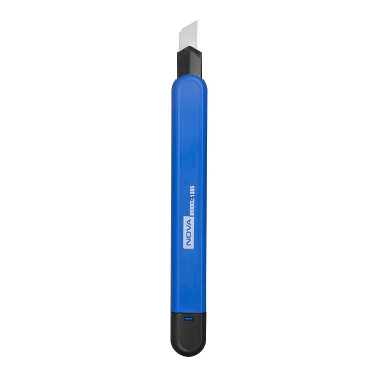 یکی از مزایای اصلی این کاتر، طراحی تیغه جداشونده (Snap-Off) آن است. این ویژگی به کاربر اجازه میدهد تا با استفاده از تیغهشکن داخلی، به سادگی قسمت کند شده را جدا کرده و فوراً یک نوک تیز و جدید برای ادامه کار در اختیار داشته باشد. این قابلیت، کارایی را در پروژههایی که به برش مداوم و دقیق نیاز دارند، به شکل چشمگیری افزایش میدهد. کاتر نووا مدل ۱۳۰۵ با ترکیب طراحی کاربرپسند، ایمنی بالا و عملکرد برشی دقیق، انتخابی عالی برای هنرمندان، طراحان، دانشجویان و تمام کسانی است که به ابزاری مطمئن برای کارهای ظریف خود نیاز دارند.