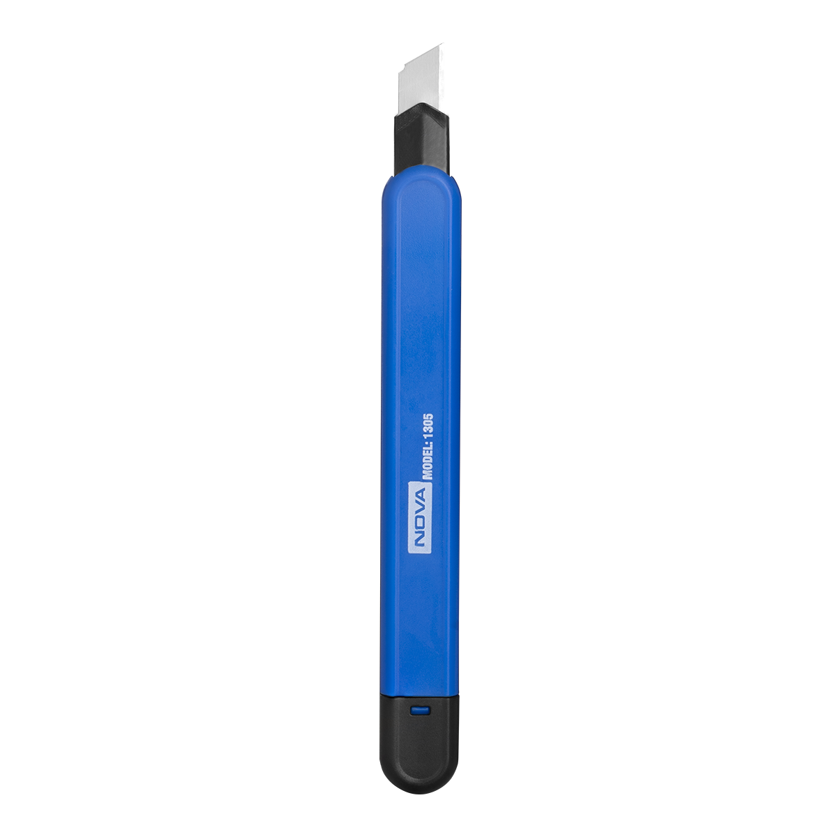 یکی از مزایای اصلی این کاتر، طراحی تیغه جداشونده (Snap-Off) آن است. این ویژگی به کاربر اجازه میدهد تا با استفاده از تیغهشکن داخلی، به سادگی قسمت کند شده را جدا کرده و فوراً یک نوک تیز و جدید برای ادامه کار در اختیار داشته باشد. این قابلیت، کارایی را در پروژههایی که به برش مداوم و دقیق نیاز دارند، به شکل چشمگیری افزایش میدهد. کاتر نووا مدل ۱۳۰۵ با ترکیب طراحی کاربرپسند، ایمنی بالا و عملکرد برشی دقیق، انتخابی عالی برای هنرمندان، طراحان، دانشجویان و تمام کسانی است که به ابزاری مطمئن برای کارهای ظریف خود نیاز دارند.