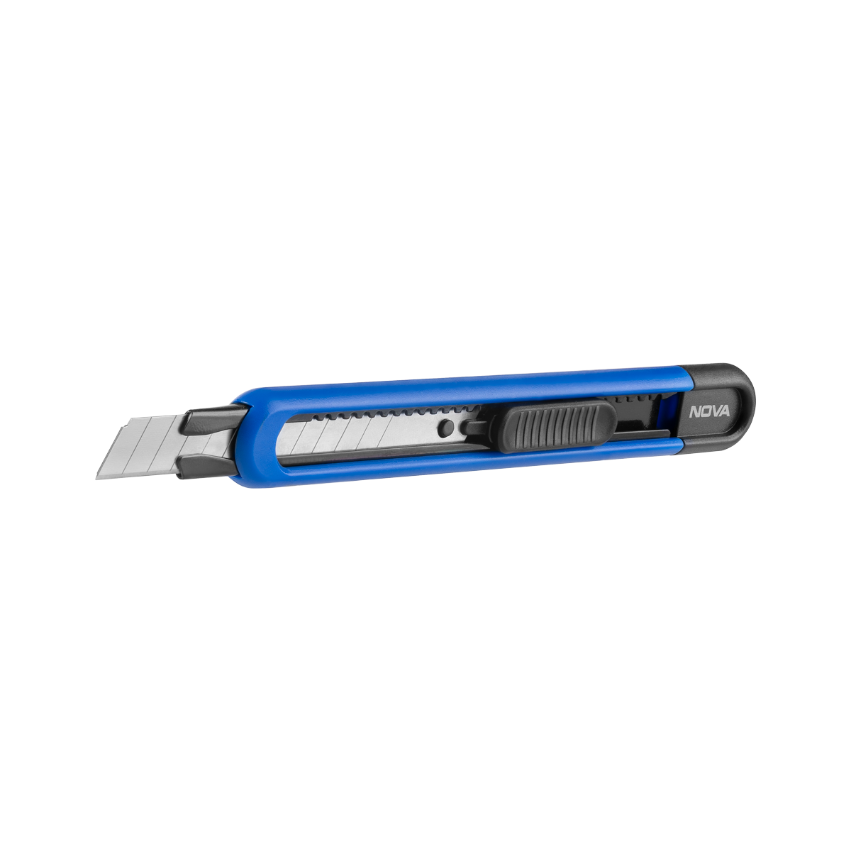 کاتر ۹ میلیمتری نووا مدل ۱۳۰۵، ابزاری دقیق و ایدهآل برای انجام برشهای ظریف و کارهای هنری است که به کنترل و دقت بالایی نیاز دارند. بدنه سبک و ارگونومیک این کاتر از پلاستیک مقاوم ABS ساخته شده که به راحتی در دست جای گرفته و امکان مانور دقیق را برای کاربر فراهم میکند. تیغه ۹ میلیمتری این مدل از فولاد کربنی باکیفیت است و برای ایجاد خطوط برش تمیز روی کاغذ، مقوا، فوم و سایر مواد حساس، عملکردی فوقالعاده دارد. ریل استیل ضدزنگ، حرکت روان تیغه را تضمین کرده و مکانیزم قفل اتوماتیک بسیار مقاوم آن، تیغه را در حین کار کاملاً ثابت نگه میدارد تا ایمنی و دقت کاربر به حداکثر برسد.