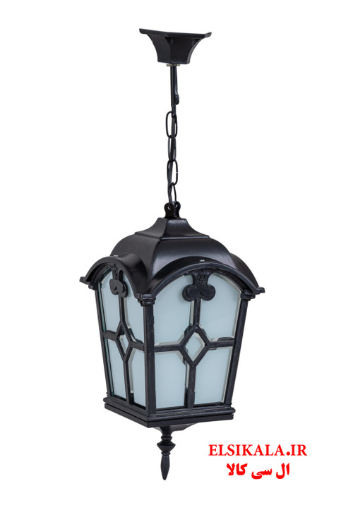 چراغ حیاطی مدل کلبه آویز مشکی مسی سفید