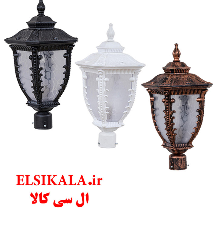 چراغ حیاطی مدل کارن سرلوله مشکی مسی سفید