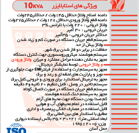 استابلایزر (stabilizer) تکفاز 10kva - 32A
