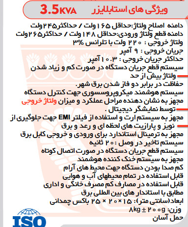 استابلایزر9a 3.5kvaآمپر تک فاز چمدانی