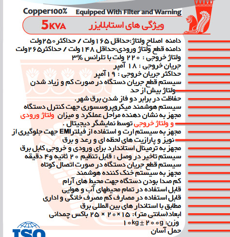 استابلایزر (stabilizer) تک فاز 5kva - 16A چمدانی