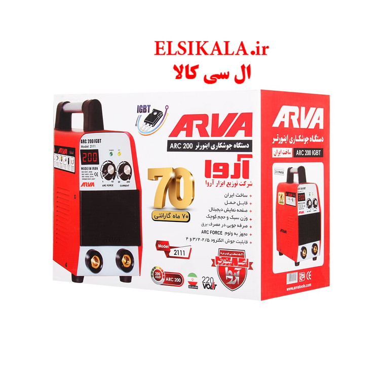 دستگاه جوش آروا ۲۱۱۱ تولید شده توسط شرکت آروا می باشد و ساخت کشور ایران است. اینورتر آروا ۲۱۱۱ یک دستگاه ۲۰۰ آمپر و سه برد است. این دستگاه سبک و قابل حمل بوده و با ولتاژ برق تک فاز ۲۲۰ ولت کار می کند. همچنین همراه دستگاه انبر جوش با کابل ۲.۵ متری و انبر اتصال با کابل ۱.۵ متری ارائه می شود.