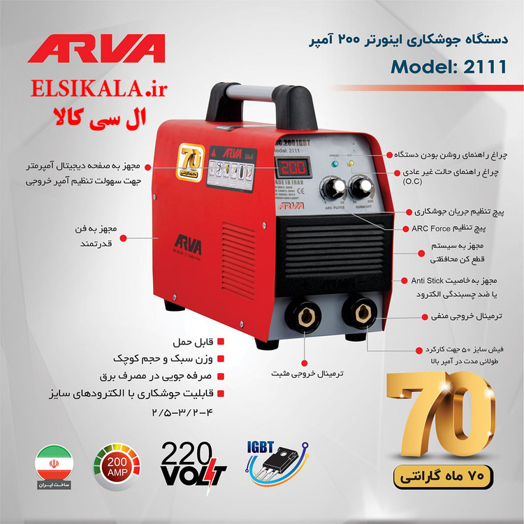 پارامتر های مهم دستگاه جوش اینورتر آروا ۲۰۰ آمپر igbt مدل ۲۱۱۱