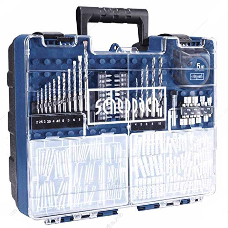 | اقلام همراه | کیف قابل حمل، ست متعلقات 206 تکه، 2 عدد باطری قدرتمند لیتیومی، شارژر سریع و قالب کمربند دستی |