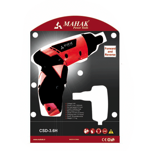 پیچ گوشتی شارژی ۳/۶ ولت با باطری لیتیوم مدل CSD-3.6 H محک
