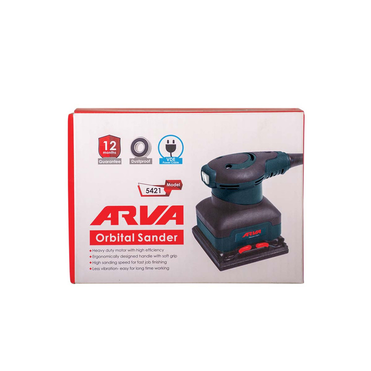 سنباده لرزان دستگاهی است که با لرزش بر روی سطوح مختلف پرداخت کاری می شود از این وسیله در کارهای نجاری، صنعت مبلمان، کابینت سازی و… استفاده شود. سنباده لرزان برقی آروا مدل ۵۴۲۱ دارای یک پد مخصوص، موتور قدرتمند و بدنه با طراحی ارگونومیک می باشد. ظاهر این سنباده لرزان به صورت مستطیل و تخت است. برای استفاده از این دستگاه نیاز به یک منبع برق دارید.