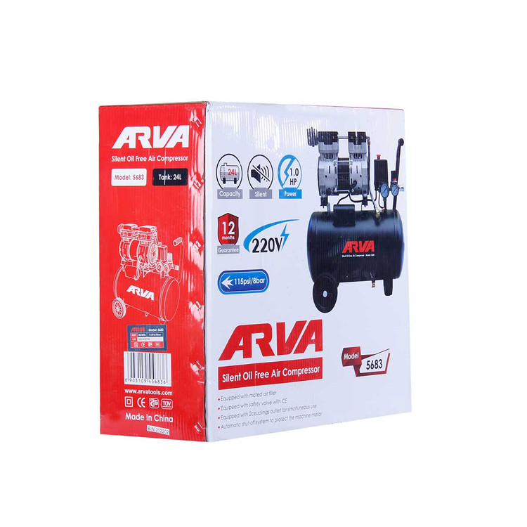 پمب بادهای سایلنت توسط یک الکتروموتور شروع به کار می کنند. کمپرسور باد سایلنت ۲۴ لیتری آروا مدل ۵۶۸۳ از نوع سایلنت و بدون روغن است. جریان ورودی برای این دستگاه ۳.۵ آمپر و توان آن ۱.۰ اسب بخار است. استفاده از این نوع پمب باد مزیت های متنوعی دارد و این امکان را برای شما فراهم می کند که در شرایط گوناگون حتی بیمارستان از این کمپرسور استفاده کنید، زیرا کاملا بدون صدا می باشد و آلودگی کمتری ایجاد می کند.
