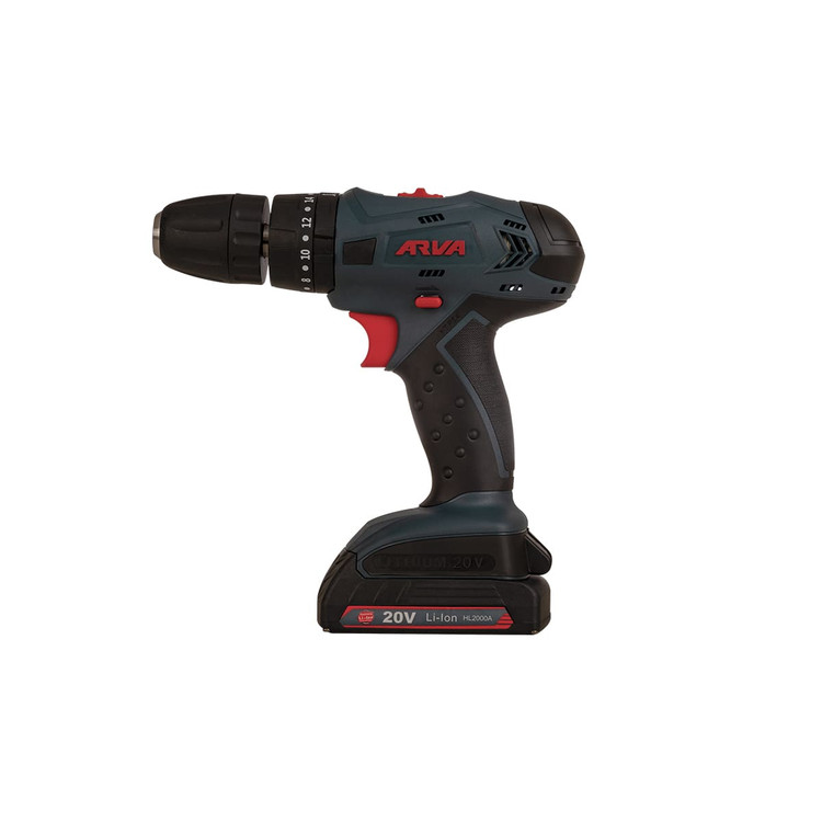 این مدل از دریل شارژی آروا گیربکس دو سرعته دارد و به علت وجود این نوع گیربکس می توان سرعت دستگاه را در یکی از دومحدوده ۰ تا ۳۵۰ دور بر دقیقه یا ۰ تا ۱۳۵۰ دور بر دقیقه تنظیم کرد. هم چنین سرعت ضربه دستگاه نیز بین ۰ تا ۵۲۵۰ یا ۰ تا ۱۸۷۵۰ قابل تغییر است. در ادامه به بررسی باتری، سه نظام، موتور و کلید های این دریل شارژی می پردازیم.