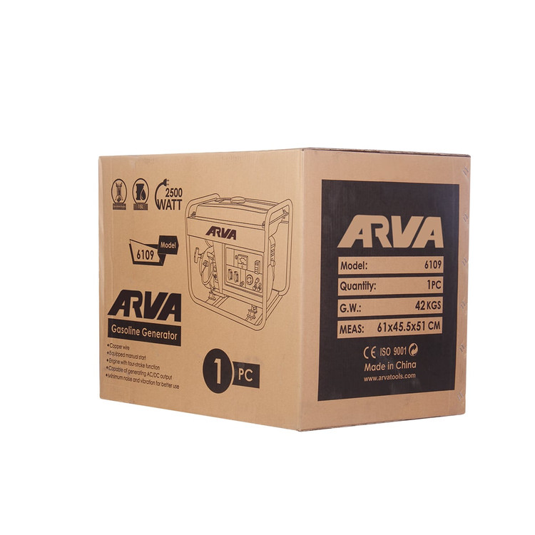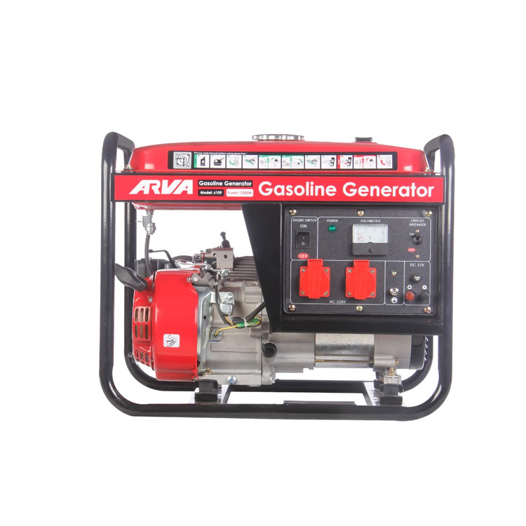 موتور برق بنزینی ۲۵۰۰ وات ۶۱۰۹ آروا مجهز به موتور با سیم پیچی ۱۰۰% مس جهت افزایش اثر بخشی و بالا بردن عملکرد دستگاه می باشد. همچنین دارای موتور ۴ زمانه و خروجی AC و DC است.