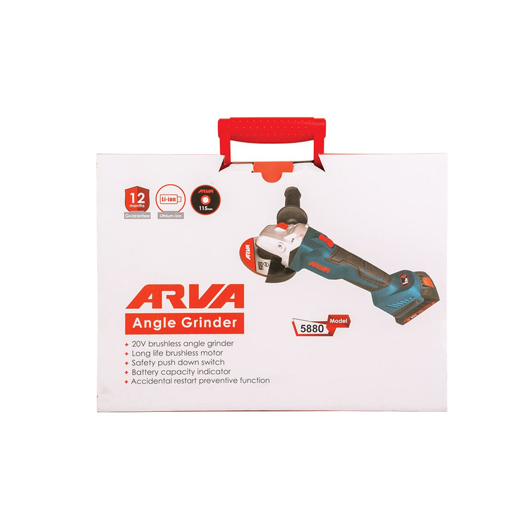 باتری این دستگاه از جنس لیتیوم یون و ظرفیت باتری ۲ آمپر ساعت است. بر روی مینی فرز شارژی براشلس آروا مدل ۵۸۸۰ نشانگر باتری به صورت سه مربع در پشت دستگاه قرار گرفته است که به راحتی می توانید زمان اتمام شارژ باتری را تخمین بزنید.