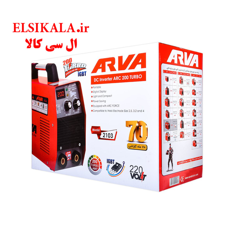 دستگاه اینورتر جوشکاری ۲۰۰ آمپر TURBO B مدل ۲۱۰۳ B آروا و با متعلقات